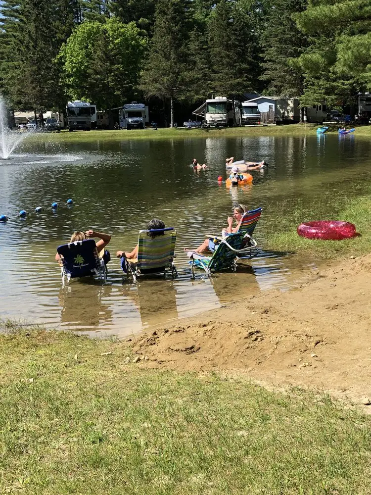 What a beautiful atmosphere! The pond is great for swimming or kayaking and looks lovely lit up at night. The owners and fellow campers are incredibly friendly and down-to-earth. We loved the spacious sites around the pond, the dog-friendly vibe, and the very clean showers and laundry. We’ll be back soon!